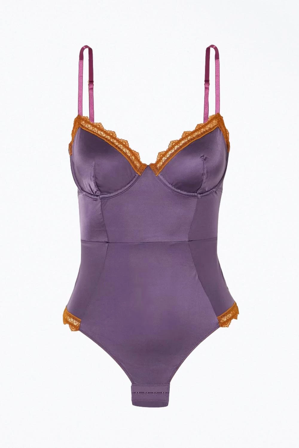 Best Sale π Dora Larsen π© women Aralie Lace Trim Underwired Bodysuit In Dark Purple π