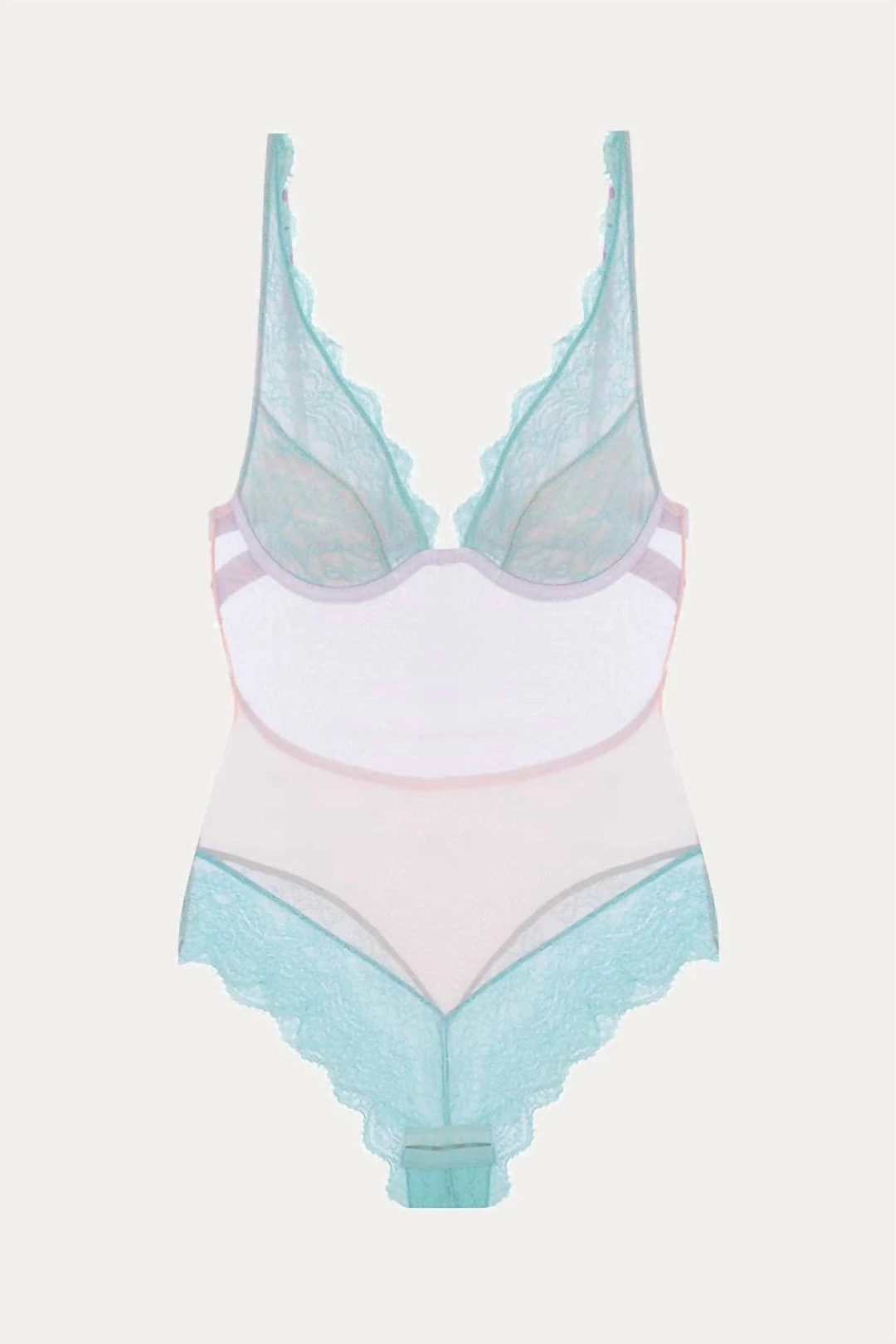 Brand new β€οΈ Dora Larsen π© women Iris High Apex Bodysuit In Pastel Sage/Peach/Dusky Lilac π₯°