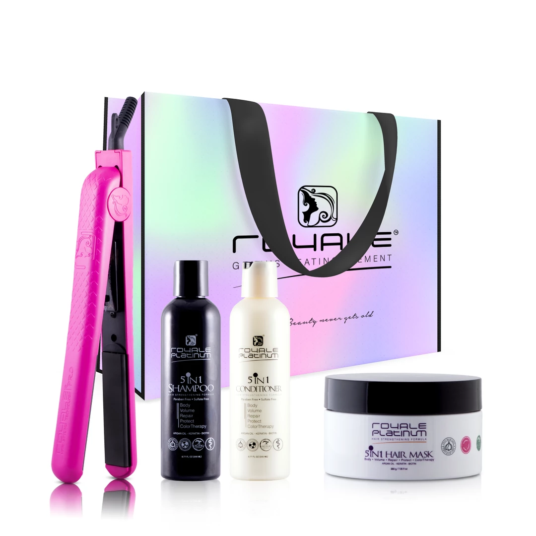 The Royale Classic Hair Straightener features 100% ceramic plates. Ceramic plates radiate far-infrared heat, preserving moisture in the hair shaft and protecting the hair cuticle from damage.